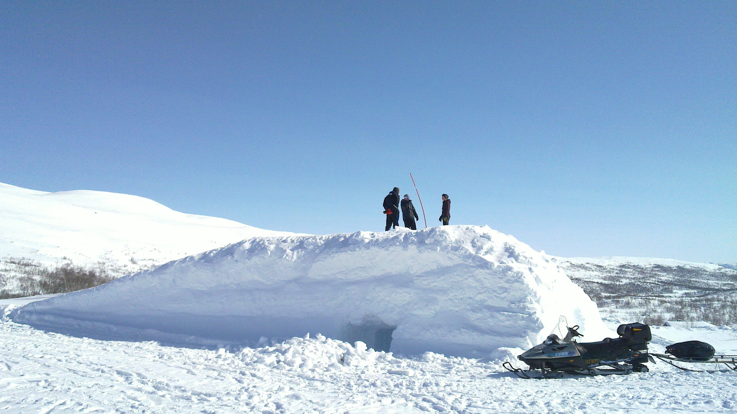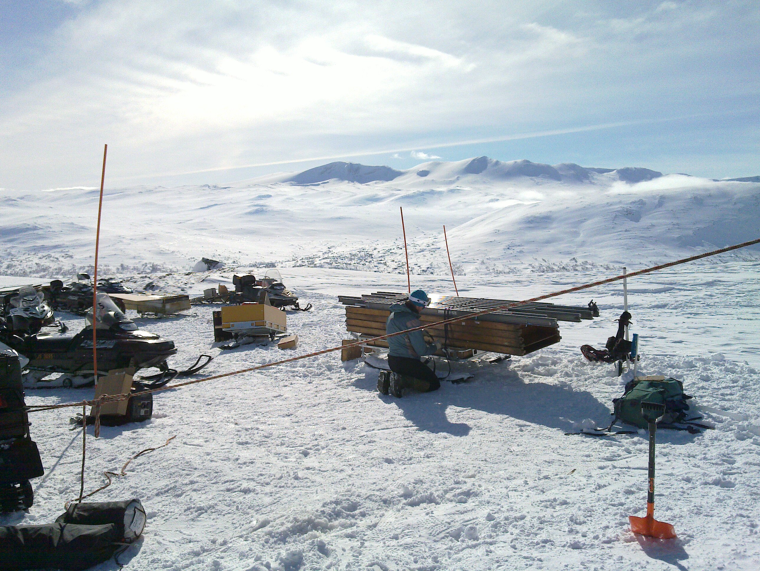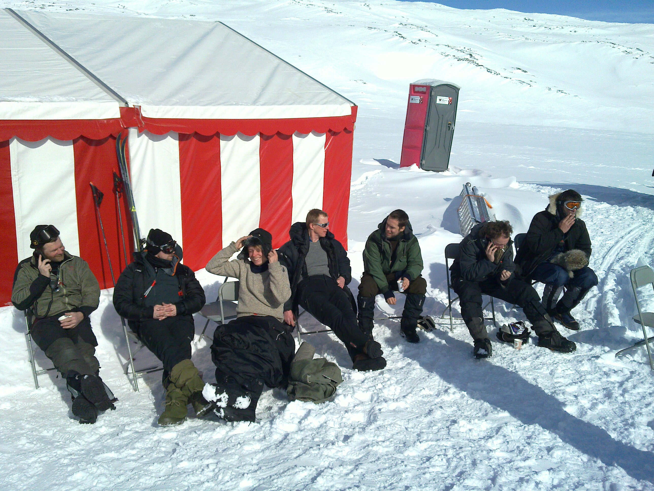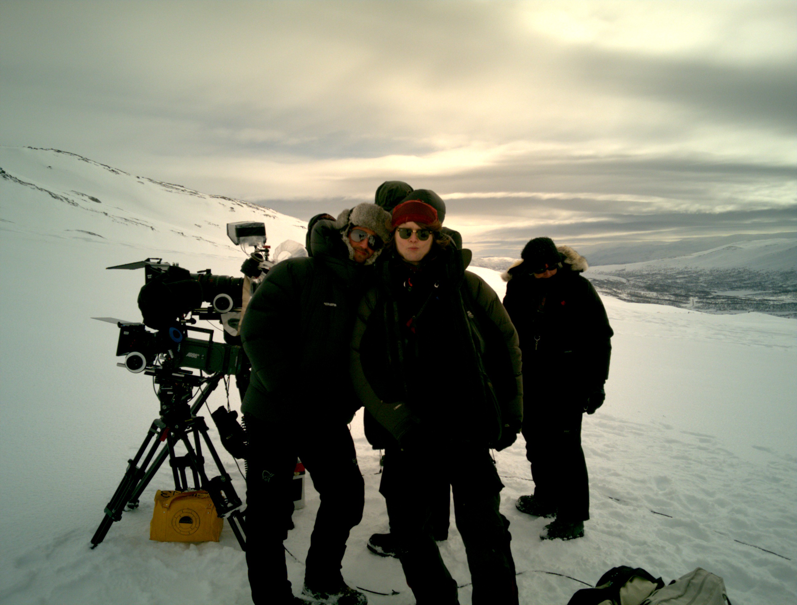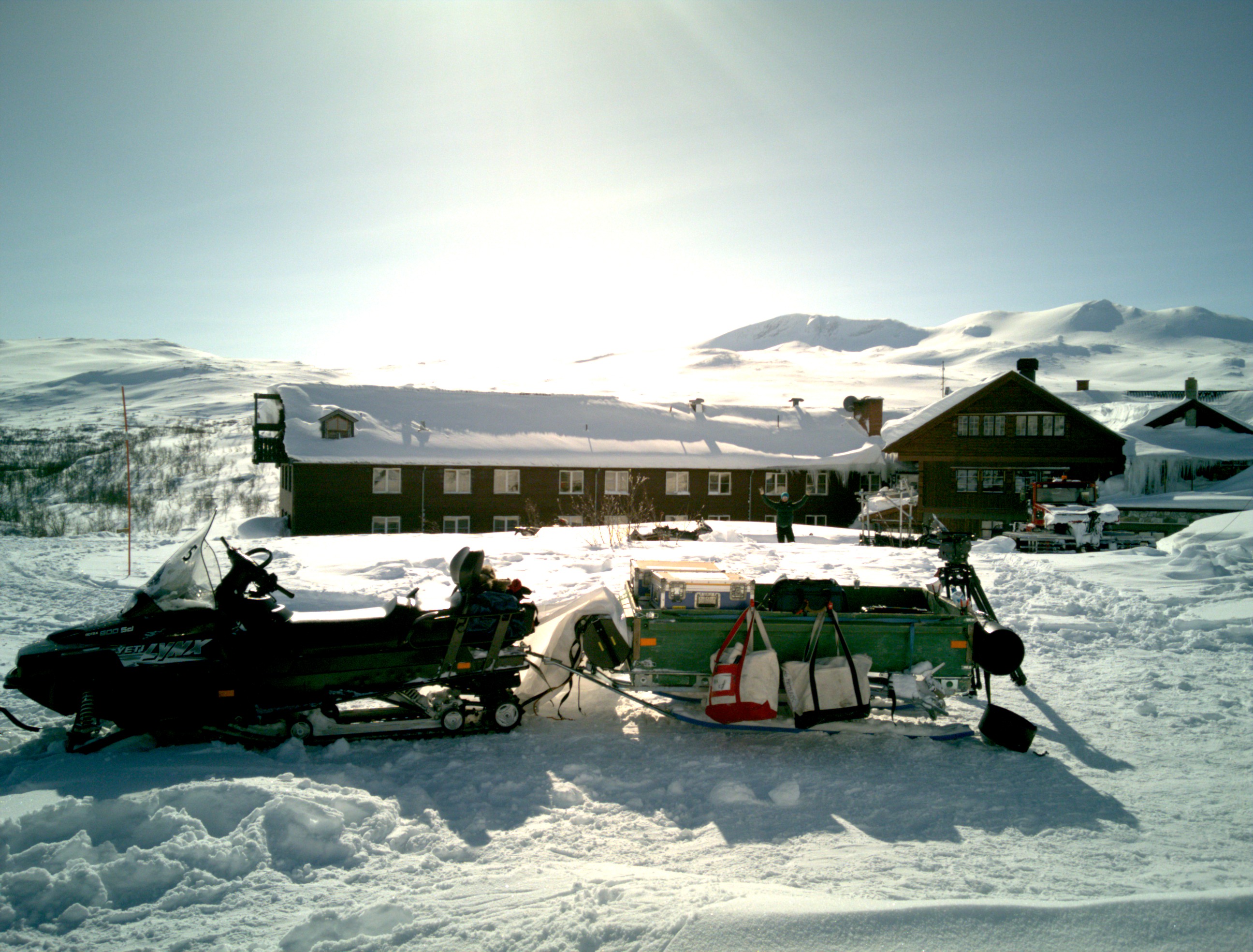 Daniel, Olav, Stian - Hytta og lyslageret i bakgrunnen!